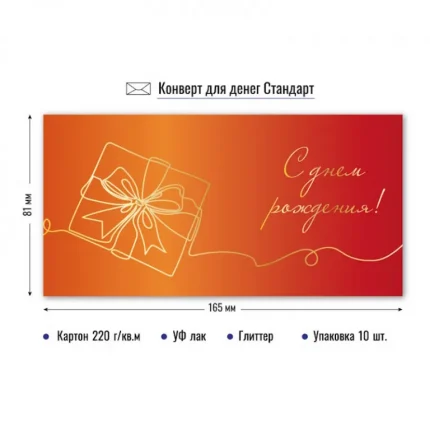 Количество товара Конверт для денег ДР «С Днем рождения!», оранжевый фон, подарок, уф-лак, блестки