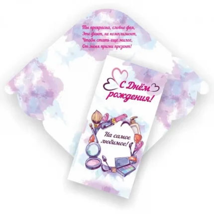 Конверт для денег ДР «С Днем рождения!», косметика, уф-лак, блестки