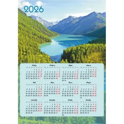 Календарь настенный листовой А2 2026 г, Lamark, Голубое озеро, мелованная бумага 90гр/м2