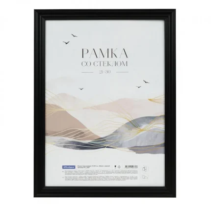 Рамка А4, 21х30 см, пластиковая, черная, стекло, OfficeSpace «Wave»