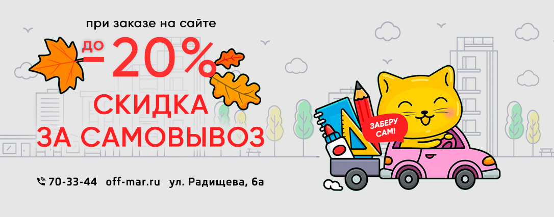 — Скидка каждому покупателю 20% за самовывоз товара при оплате наличными.