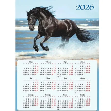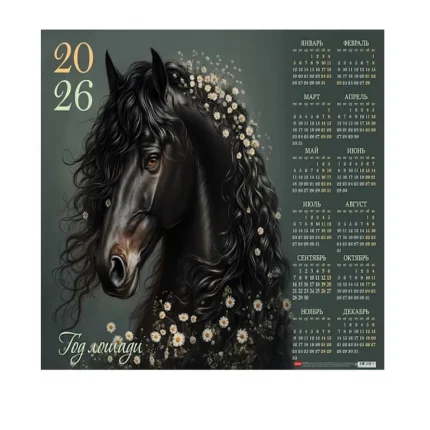 Календарь настенный листовой А2 2026 г, Lamark, Символ года — Год Лошади. Вороной. 90гр/м2