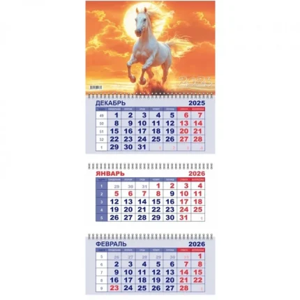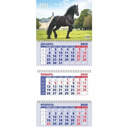 Календарь квартальный 3 бл. на 3 гр. 292×650 мм, Lamark. Белая Лошадь, 2026г.
