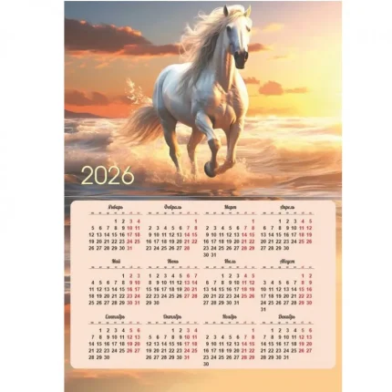 Календарь настенный листовой А2 2026 г, Hatber «Год Лошади», укруп. сетка, мелов. бумага, 135 гр/м2