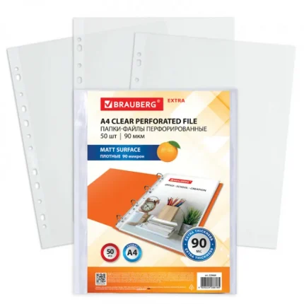 Вкладыш для папок (мультифора) А4, 90 мкм, матовые (50 шт/упак) BRAUBERG «EXTRA 900»