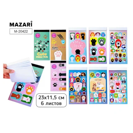 Альбом с наклейками Mazari.Лапки, 6 листов, размер 115*230 мм