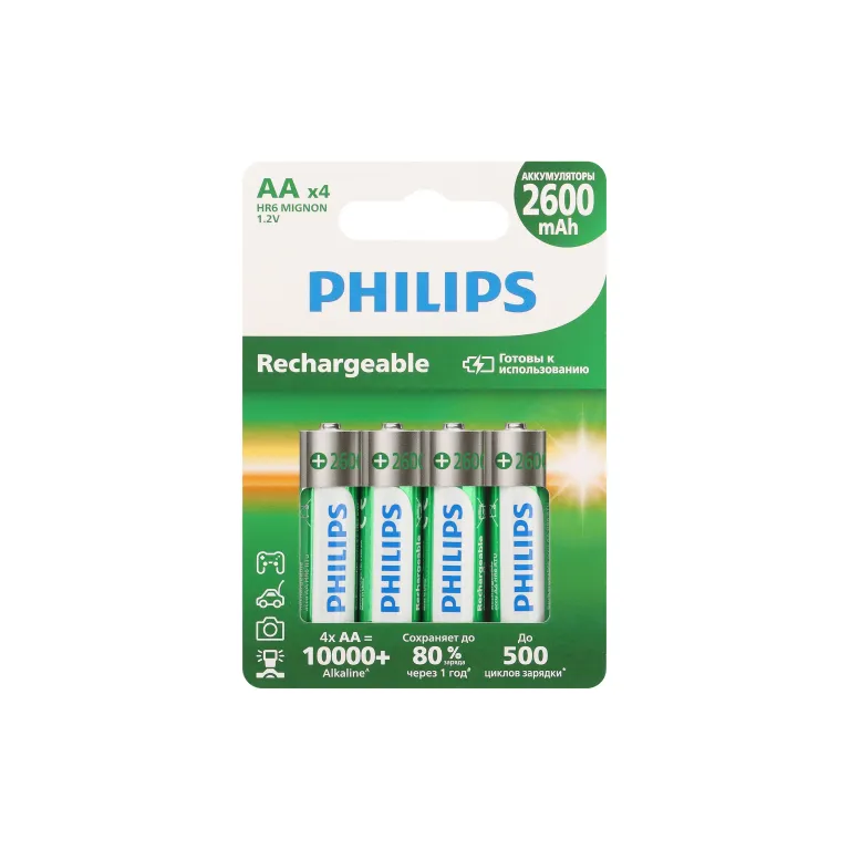 Аккумулятор Philips AAA, 1000мАч, 1.2В, Ni-MH, HR03-4BL (цена за 1 элемент)