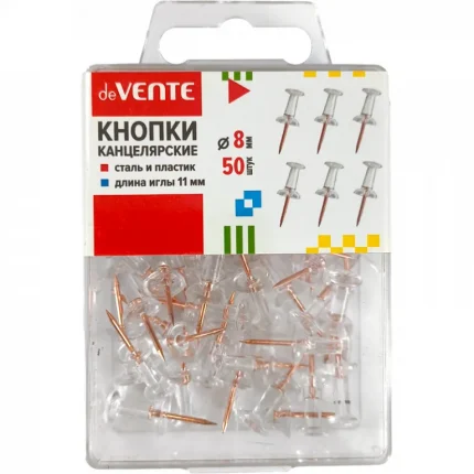 Предназначены для крепления информации к пробковым доскам. Упаковка в пластиковую коробочку с европодвесом — по 250 шт.