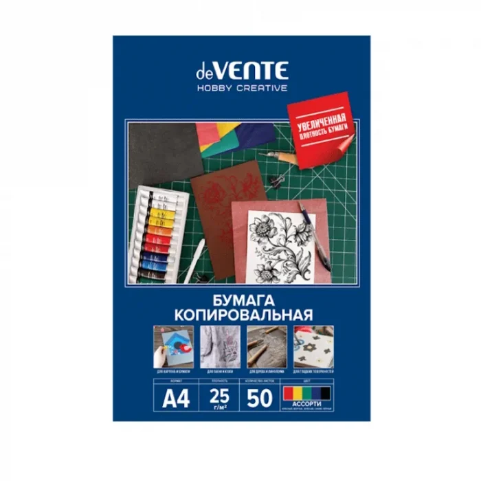 Копировальная бумага «deVENTE. HOBBY CREATIVE» A4 50 л, 25 г/м², 5 цв (красный, желтый, зеленый, синий, черный) в картонной папке