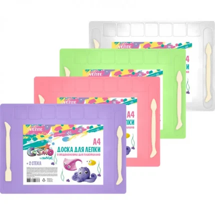 Доска для лепки «deVENTE» A5 (200×170 мм) пластиковая толщиной 4 мм, 2 стека в комплекте и отделения для пластилина, цвета ассорти, индивидуальная упаковка