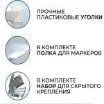 Доска комплектуется съёмной полочкой для маркеров, набором для навесного крепления и инструкцией по установке.