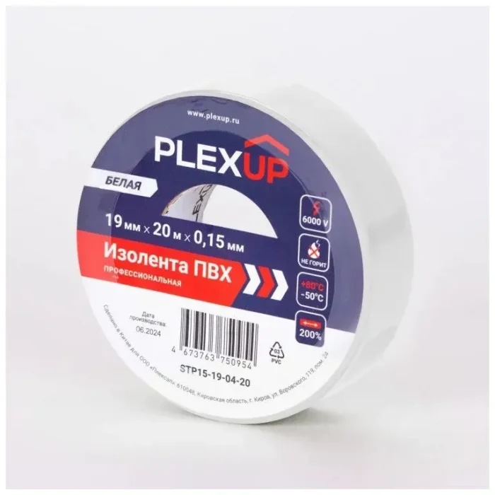 Изолента ПВХ PlexUp (19мм х 20м) белая