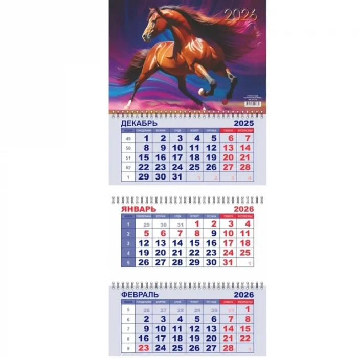 Календарь квартальный 3 бл. на 3 гр. 292×650 мм, Lamark. Символ года-Год Красной Лошади, 2026г.