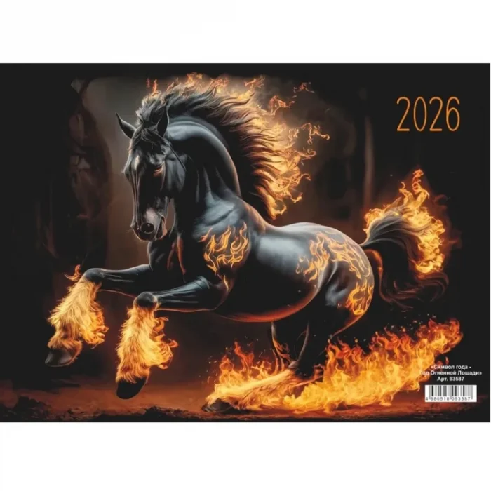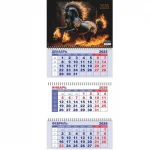Календарь квартальный 3 бл. на 3 гр. 292×650 мм, Lamark. Символ года-Год Огненной Лошади, 2026г.