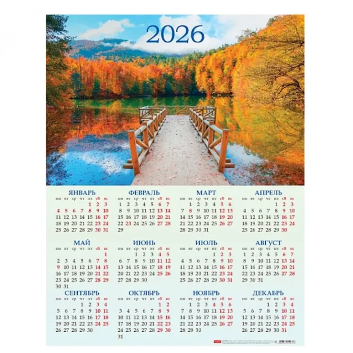 Главная Канцелярские товары Бумажные изделия Календари Календарь настенный листовой А2 2026 г, Hatber «Золотая осень», укруп. сетка, мел. бумага, 135 гр/м2