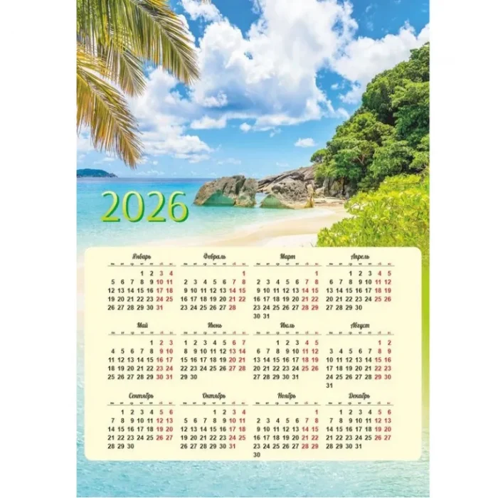 Календарь изготовлен из мелованной глянцевой бумаги 90г/м. Размер 420х594 мм.