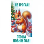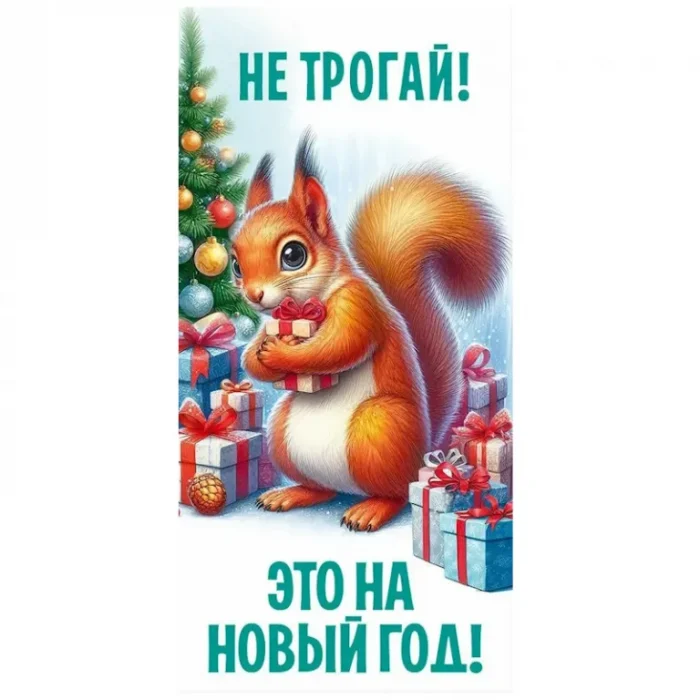 Поздравительный конверт для денег «Не трогай! Это на Новый год!» с забавным дизайном преобразит любое торжество. В центре композиции – чудесная белочка с подарками.
