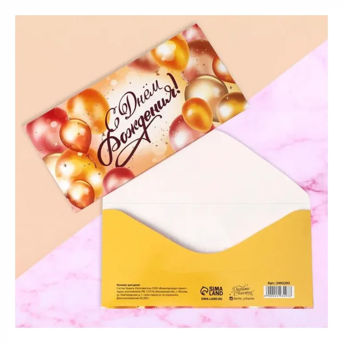 Главная Канцелярские товары Товары для праздника Конверты для денег, открытки Конверт для денег «С Днем рождения», золотые шары, без отделки