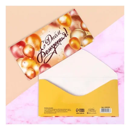 Конверт для денег «С Днем рождения», золотые шары, без отделки 35 руб.