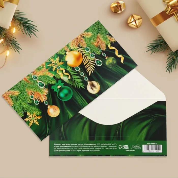 Конверт для денег «С Новым годом!», игрушки, без отделки