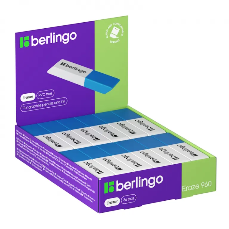 Прямоугольный скошенный ластик Berlingo Eraze 960 идеален для школы и офиса.