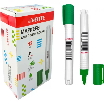 Набор маркеров для белой доски «deVENTE» (04 цв — зел, красн, син, черн) круглый корпус, колпачок с клипом, пулевидный наконечник, ширина линии 3 мм, в пластиковой коробке
