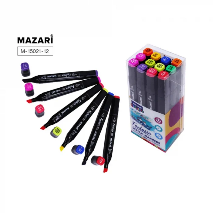 Набор маркеров для скетчинга 12 цв., двусторонние, цвета осн+флюоресц, 3/6.2 мм, Mazari.FANTASIA