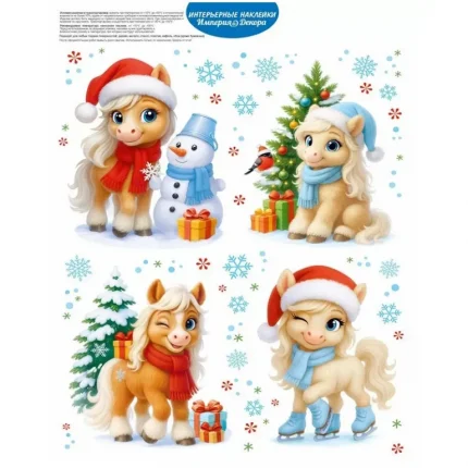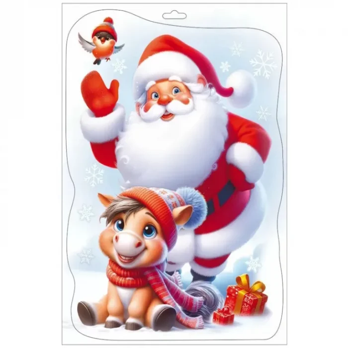 Яркая цветная двусторонняя наклейка «Дед Мороз и пони» создает неповторимую атмосферу чудесного зимнего праздника и станет незаменимым атрибутом в оформлении любого помещения к новогоднему торжеству!