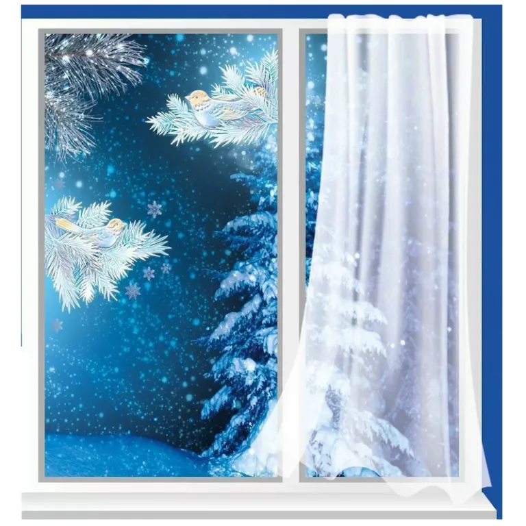 Главная Канцелярские товары Товары для праздника Новогодние товары Наклейки для окон и стекла 24*33 см, самокл. пленка, «Мерцающие птички»