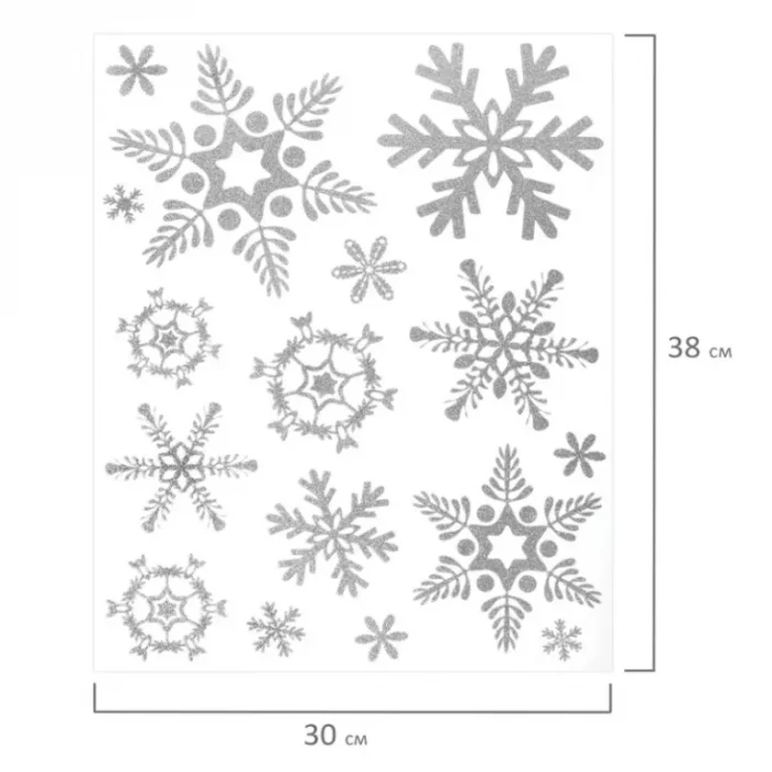 Комплект наклеек с изображением снежинок изготовлен из поливинилхлорида (ПВХ).