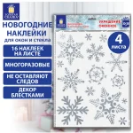 Каждый лист с наклейками размером 30×38 см декорирован серебристым глиттером.