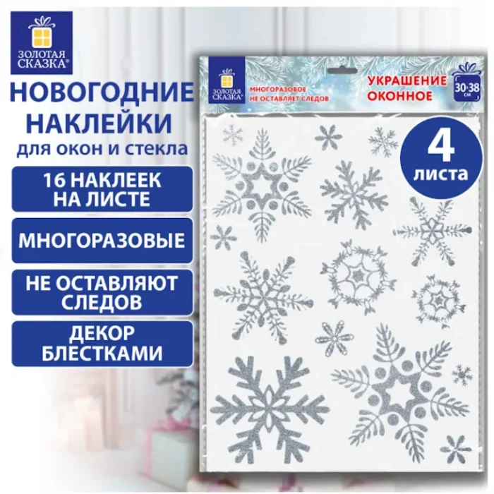 Украшение для окон и стекла ЗОЛОТАЯ СКАЗКА – это отличный и недорогой способ украсить домашний или офисный интерьер к новогодним праздникам.
