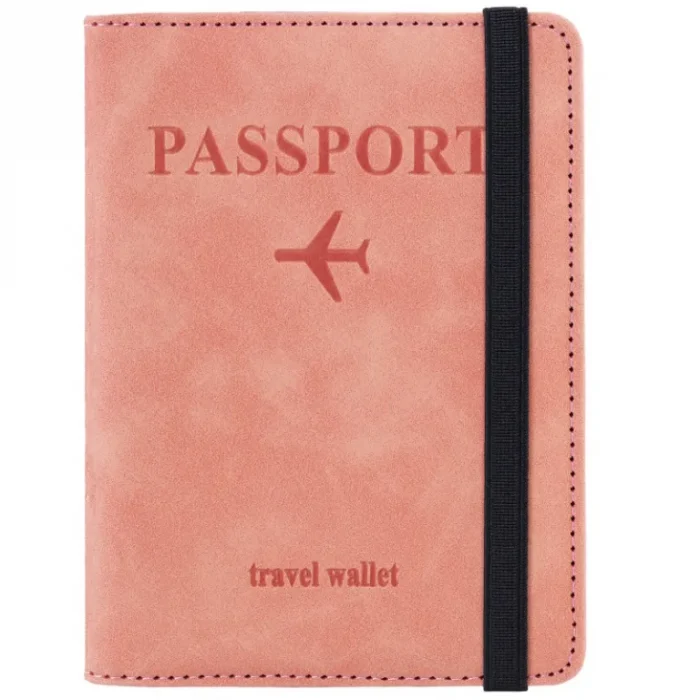 Модель выполнена из экокожи розового цвета c приятной на ощупь soft touch-поверхностью и украшена тиснением в виде надписи «Passport», «travel wallet» и силуэта самолета.