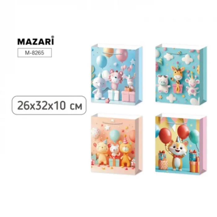 Пакет подарочный 26x32x10 см, бумажный, Mazari. Детский, 4 дизайна