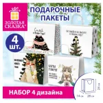 Набор подарочных новогодних пакетов изготовлен из крафт-бумаги, снабжен бумажными ручкам.