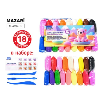 Пластилин супер легкий 18 цв., 216 г, 3 стека, пакет, Mazari 185 руб.