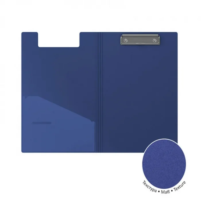 Папка-планшет формата А4 из высококачественного пластика с надежным прижимным механизмом и текстурой поверхности «песок», на которой не видно отпечатков пальцев и мелких царапин.