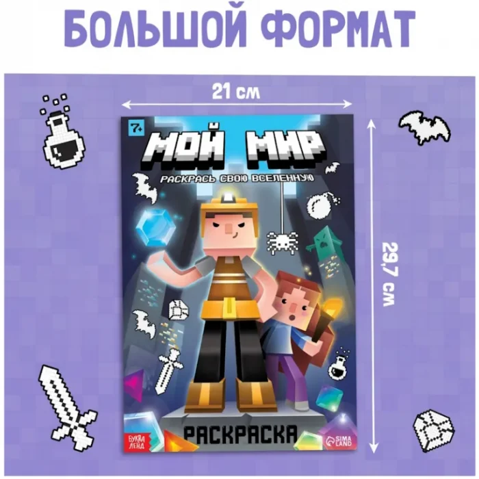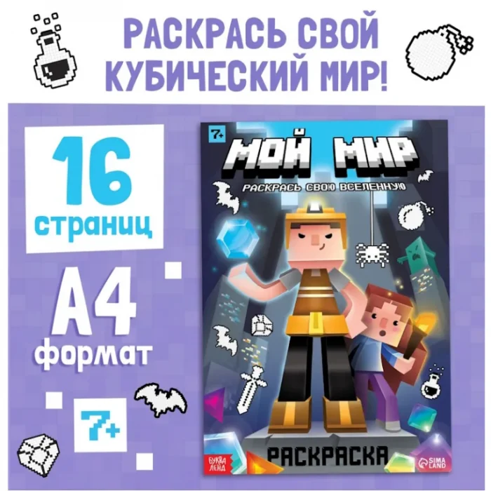 Раскраска «Мой мир» создана специально для любителей пиксельной графики и компьютерных игр.