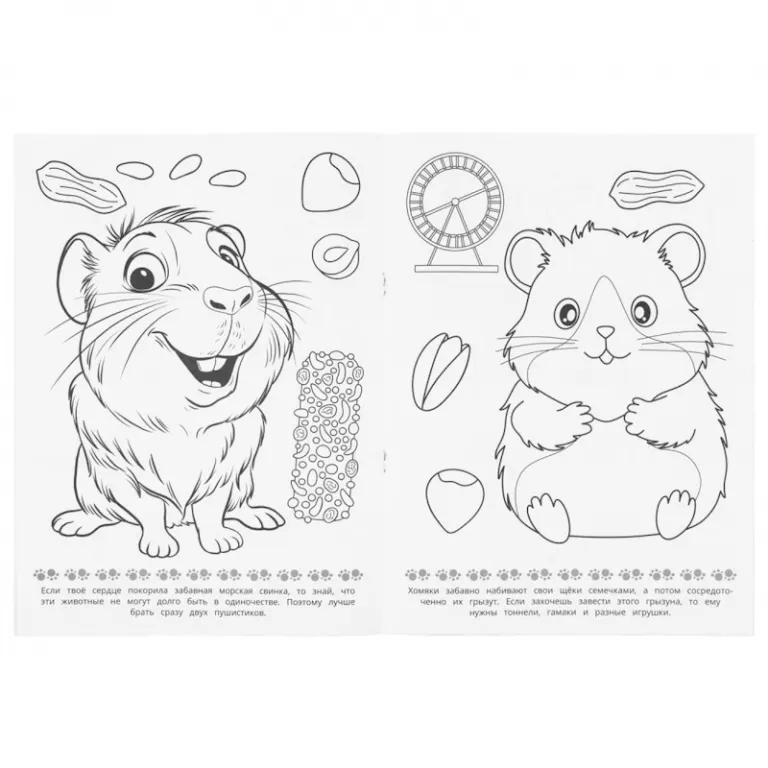 Эта увлекательная раскраска с очаровательными питомцами непременно понравится вашему ребёнку. В ней он найдёт интересные картинки с чёткими контурами и сюжетными текстами к ним.