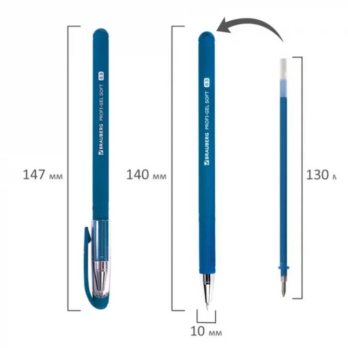Гелевая ручка BRAUBERG «Profi-Gel SOFT» с покрытием soft-touch приятна на ощупь и не скользит в руке, обеспечивая мягкое и комфортное письмо.