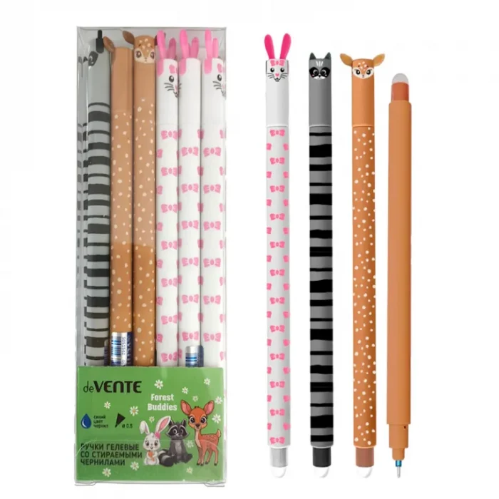 Ручка гелевая стираемая «deVENTE. Forest Buddies» d=0,5 мм, корпус с эффектом Velvet-Touch, цвета корпуса ассорти 3 цвета, с декоративными элементами и запечаткой
