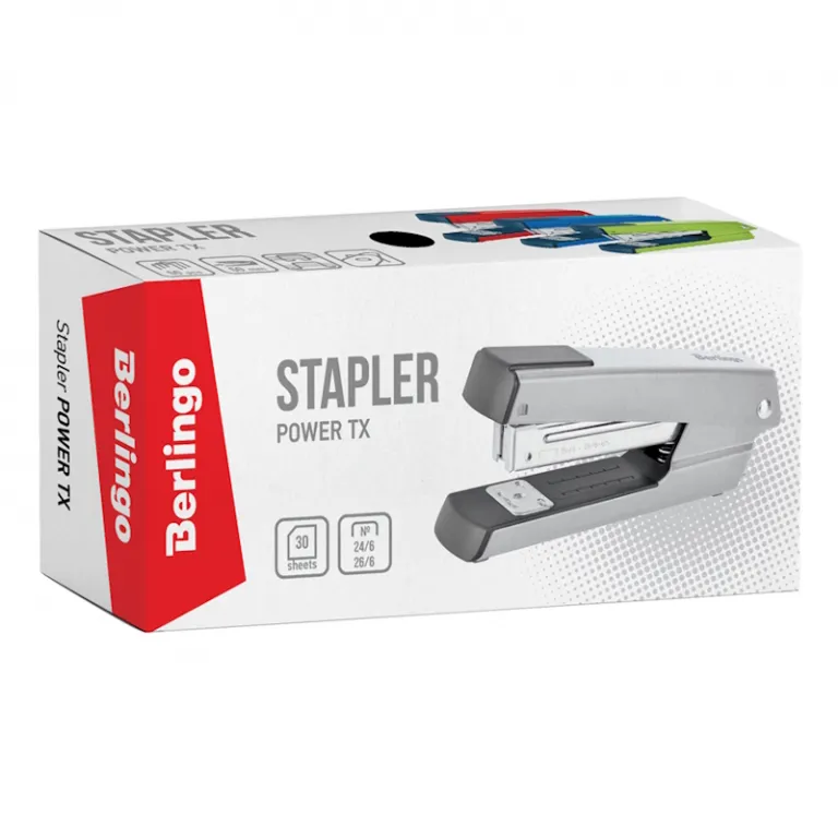 Яркий канцелярский степлер Berlingo Power TX прекрасно подходит для ежедневного использования на рабочем месте.