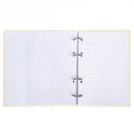 Тетрадь А5 формата, 80 листов. Обложка: твердая, ламинация Soft-touch. Внутренний блок: офсет 80 гр., клетка. Скрепление: на 4-х кольцах. Упаковка: индивидуальная в термоусадочную пленку.
