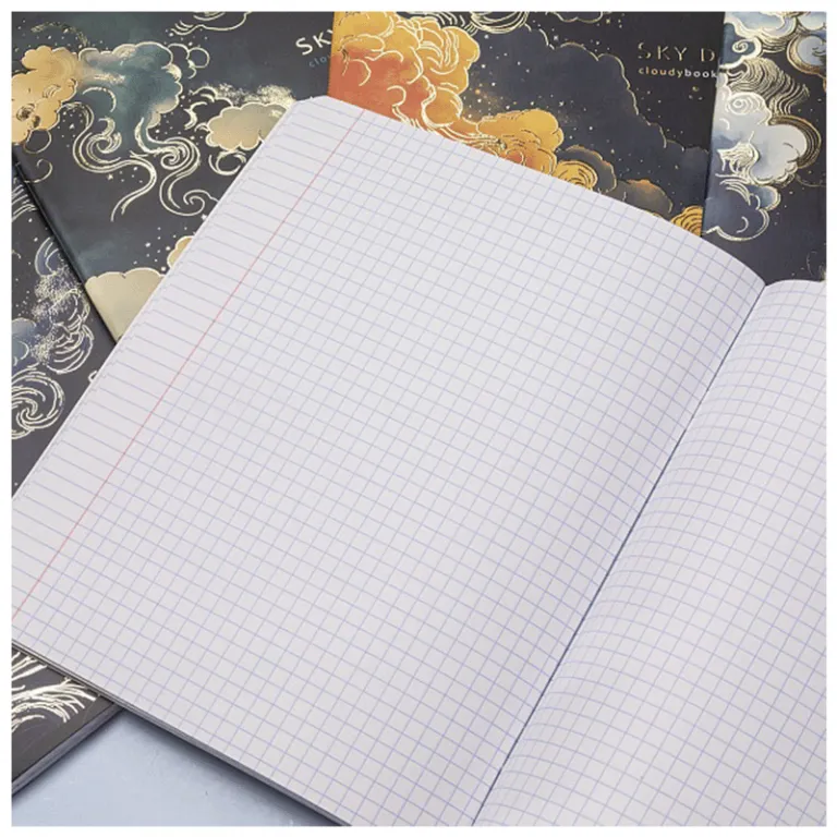 Тетрадь А5 формата 48 листов. Обложка: мелованный картон. Дополнена спецэффектами в виде матовой ламинации и 3D фольги. Внутренний блок: офсет 65 гр.м, клетка, красные поля.