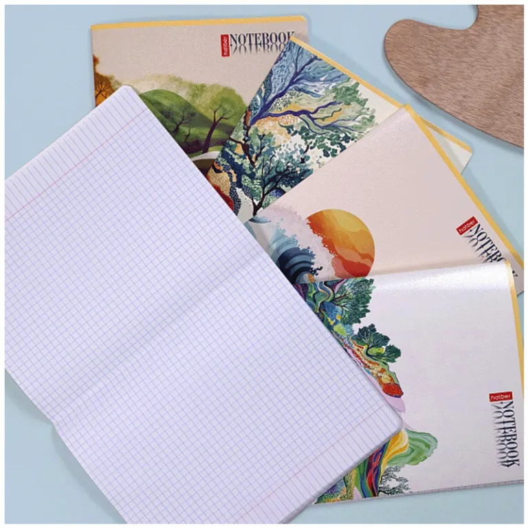 Тетрадь А5 формата 48 листов. Обложка: Мелованный картон. Дизайн изделия дополнен спецэффектами в виде тиснения. Внутренний блок: офсет 65 гр., клетка, красные поля.