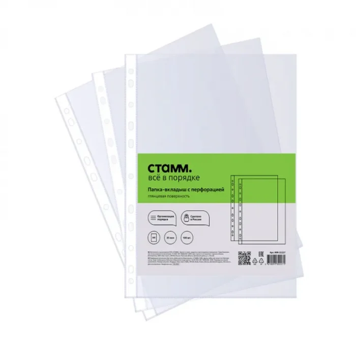 Вкладыш для папок (мультифора) А4, 40 мкм. глянцевый (100 шт/упак) OfficeSpace