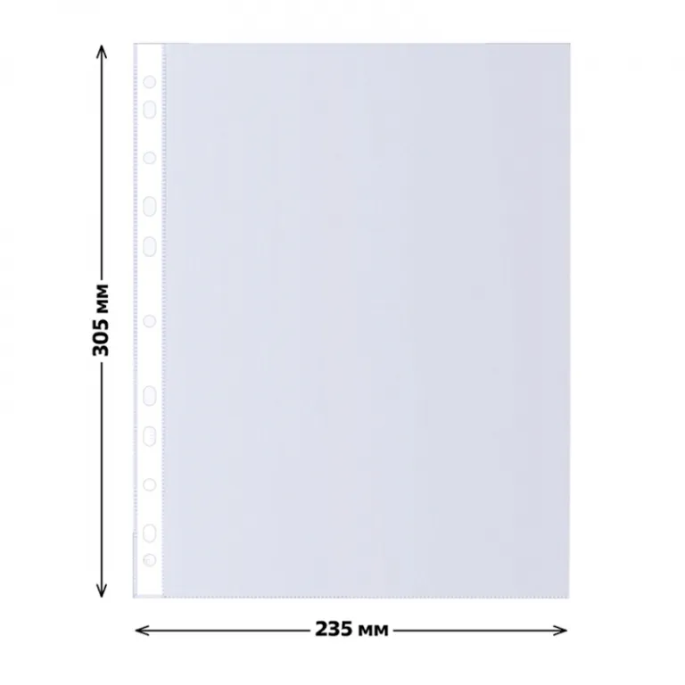 Папка размером 305*235 мм изготовлена из полипропилена толщиной 35 мкм.